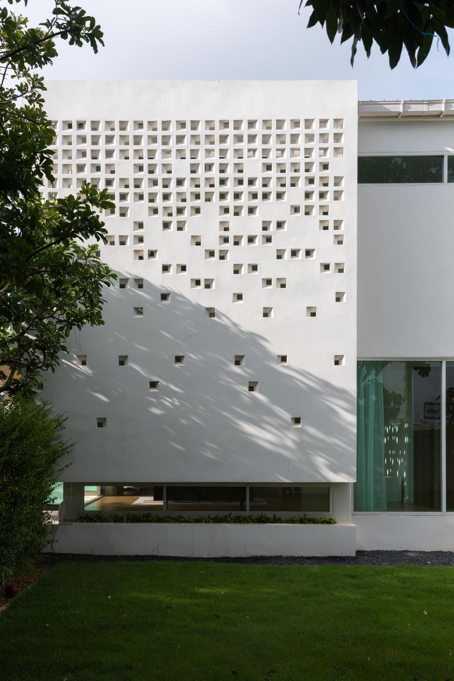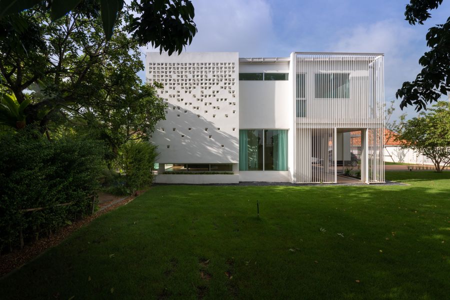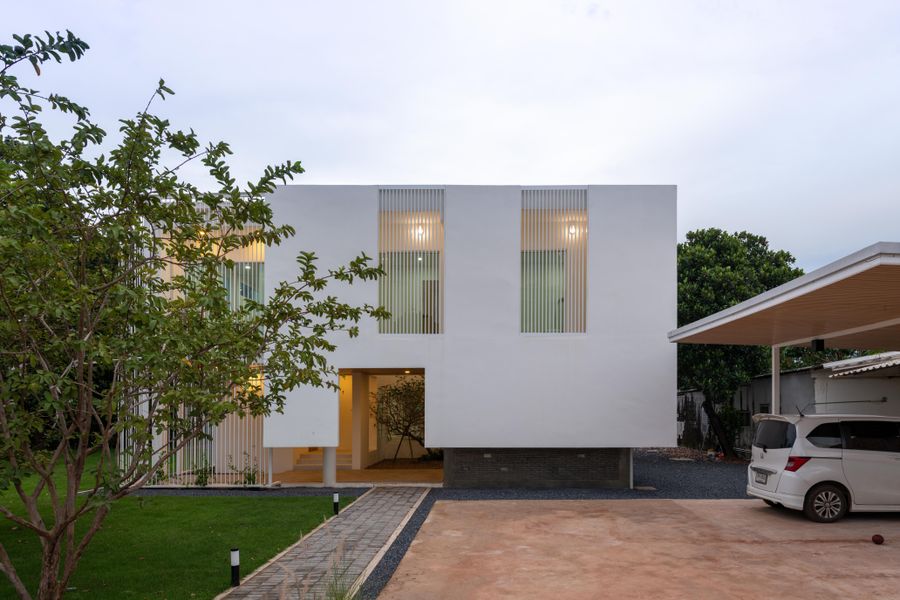 โจทย์ที่ยากที่สุดคือ การทำให้บ้านดูเรียบ แต่ไม่ธรรมดา และอยู่สบายจริงโดยไม่พึ่งพาเทคโนโลยีซับซ้อน เราแก้ปัญหานี้ด้วยการใช้สัดส่วน มวลอาคาร และช่องว่าง ให้สถาปัตยกรรมทำงานแทนเครื่องจักร เช่น การจัดวางอาคารให้เกิดเงา การซ้อนผนัง และการควบคุมมุมมอง เพื่อสร้างความเป็นส่วนตัวและลดความร้อน