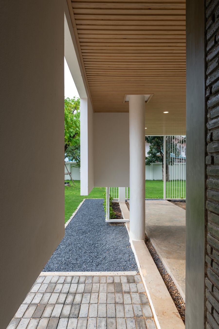 ซื่อสัตย์ต่อการใช้งาน และอยู่สบายจริงในบริบทของพื้นที่และชีวิตประจำวันของผู้อยู่อาศัย ล้วนมองเห็นกันได้ผ่านสวนกลางบ้าน เพราะความเย็นที่แท้จริง ไม่ใช่แค่ลม