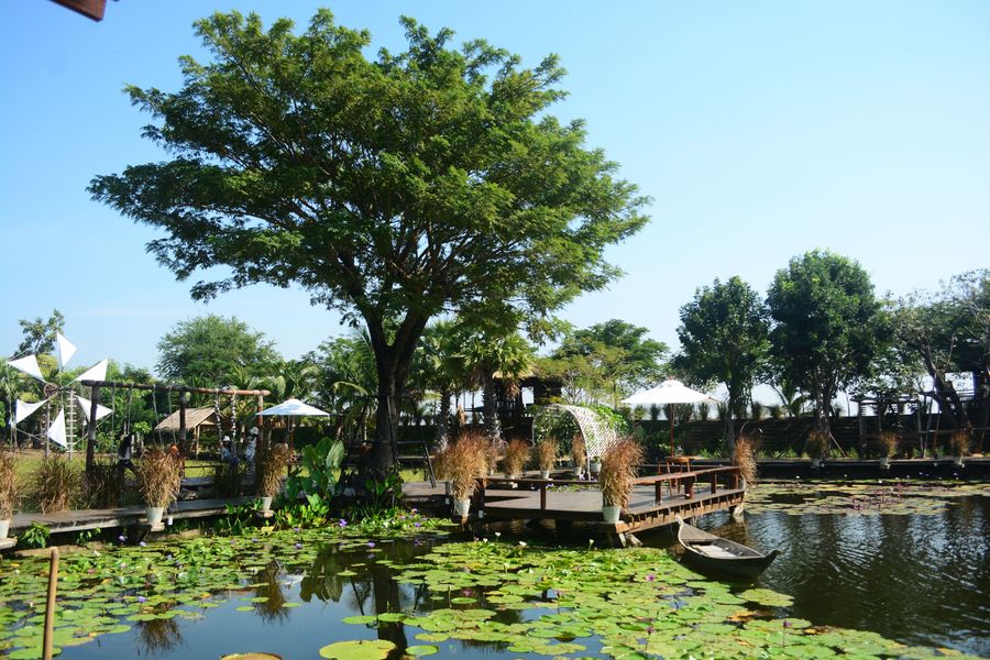 พื้นที่โครงการมีการขุดปรับพื้นที่เพื่อให้เหมาะสมต่อการใช้งานเนื้องจากเป็นพื้นที่น้ำหลากและมีลมแรงในช่วงมรสุมทางผู้ออกแบบจึงออกแบบวางผังและอาคารให้สอดคล้องกับพื้นที่และการใช้งานโครงการมีพื้นที่ อาคารCafe คันดินล้อมรอบ
