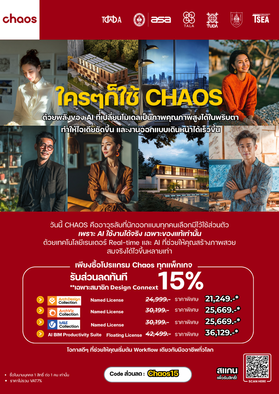 ✨วันนี้ Chaos Suite กลายเป็นเครื่องมือมาตรฐานที่นักออกแบบและสาย Visualization ส่วนตัว เลือกใช้เทคโนโลยีเรนเดอร์ Real-time และ AI ที่ช่วยให้คุณสร้างภาพสวยสมจริงได้ไวขึ้นหลายเท่า